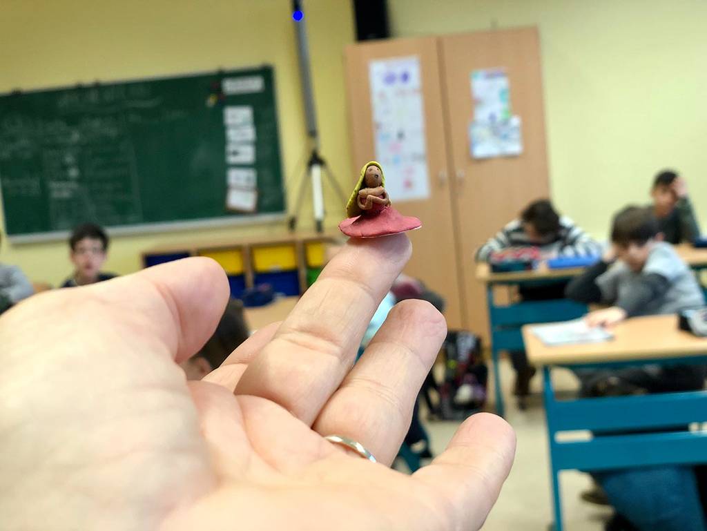 Zum Beispiel Tiere: Es gab es ein großes Pferd und ein halbes Schwein. Die sind jetzt Kunstwerke für die Bühne. Es gibt auch ein paar Modelle von dem Bühnenbild. Die Modelle sind viel kleiner und dafür da, dass die Bildhauer sehen, wie das dann so ungefähr aussehen wird.