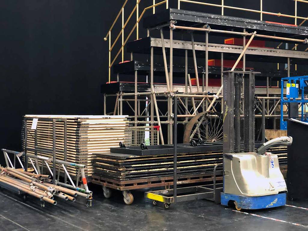 Als Bühnentechniker muss man im Team arbeiten und viele Dinge tragen.